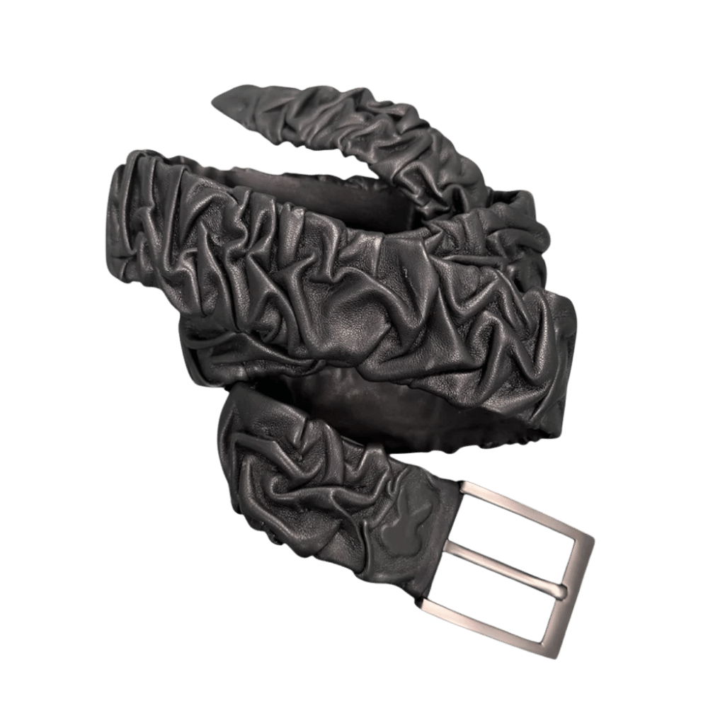 Each crease is individually formed, giving the piece its sculptural tension and making every belt truly unique.
