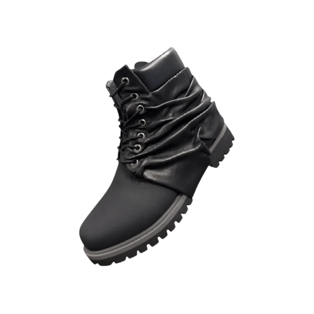 Transform your boots with our Creased Leather Timberland Cover, designed to add a unique high-fashion twist to the classic work-boot silhouette.
